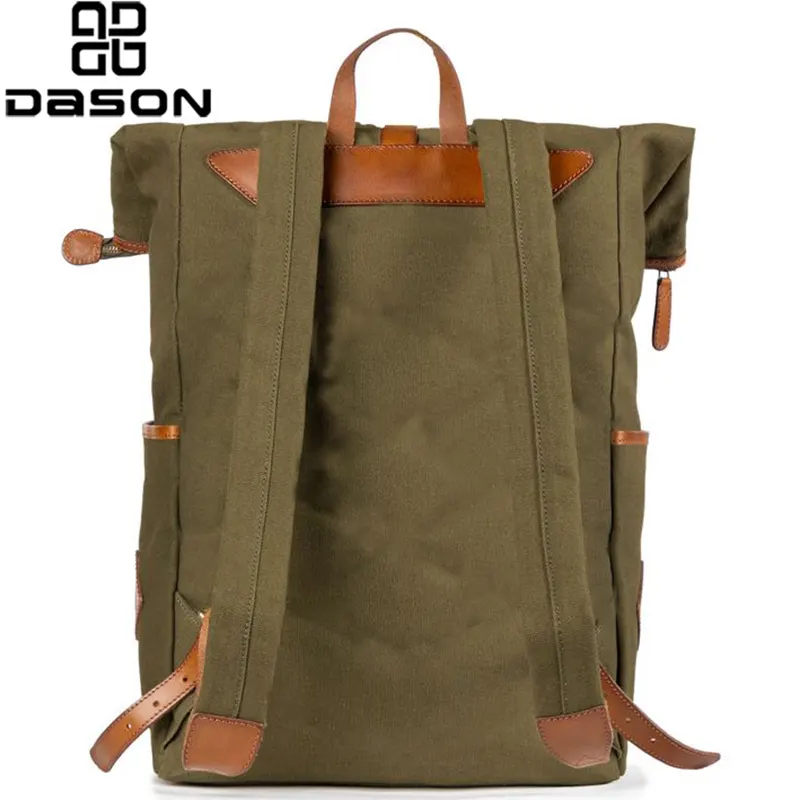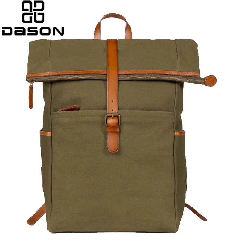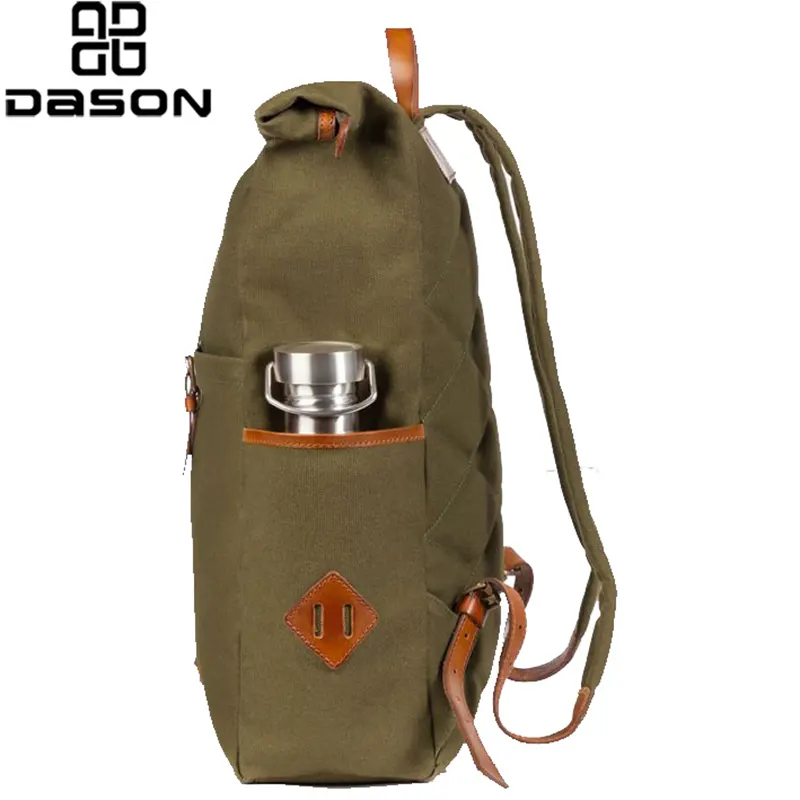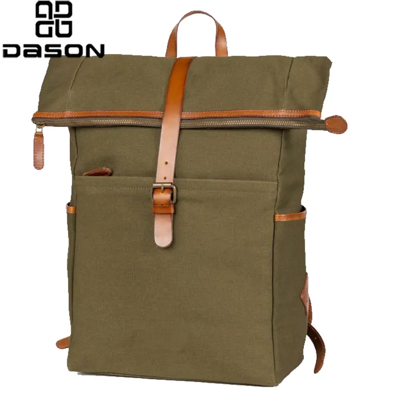 Canvas Rolltop Backpack er en solid og slitesterk ryggsekk som kan brukes ved ulike anledninger, som daglig pendling, reiser, utendørssport osv. Denne ryggsekken er laget av vanntett lerretsmateriale, som gir god vanntett funksjon for å sikre at dine eiendeler er godt beskyttet. Denne rullesekken med lerret folder ut toppen for å utvide kapasiteten fra 20 liter til 30 liter. Canvas Roll Top Backpack har et separat rom på innsiden for å oppbevare den bærbare datamaskinen, og er en unisex ryggsekk for voksne som passer for reiser og hverdagsbruk. Konstruert av kraftig lerret, med stropper og trim i kontrastskinn foran. Justerbare skulderstropper. og polstret bakpanel for komfort. Det er et stort hovedrom med en bronseglidelås som inkluderer en innvendig polstret lomme for å oppbevare en bærbar datamaskin på opptil 15,6 tommer, 1 frontlomme med glidelås for å oppbevare mindre gjenstander, og glidelommer på begge sider som er store nok til å holde en vannflaske for å passe personlig. preferanse og må justeres fritt for å passe til kropper i alle størrelser og former. En annen viktig egenskap ved denne ryggsekken er holdbarheten. Laget av materialer av høy kvalitet for å tåle slitasje ved regelmessig bruk, glassglassdesign, praktiske innvendige og utvendige lommer, justerbare skulderstropper og ryggpolstring, og slitesterke konstruksjonsmaterialer gjør den til en hverdagslig En av de essensielle ryggsekkene.