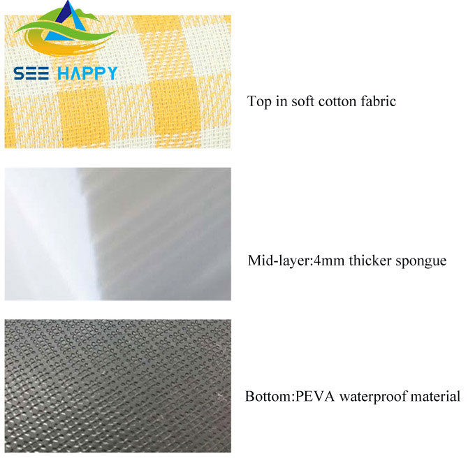 Picnic Blanket er et piknikteppe som passer til utendørs piknik og utendørsaktiviteter. Laget av materialer av høy kvalitet, inkludert mykt overflatemateriale og vanntett og slitebestandig bunnmateriale, for å gi deg den perfekte utendørsopplevelsen. Den vanntette designen gjør at du kan bruke den med selvtillit og få en behagelig hvile uansett vær og underlag. Den kommer i en rekke størrelser for å dekke behovene til familier og grupper, og er også et flott utendørsutstyr som kan brukes når som helst, hvor som helst. Dette teppet er også veldig lett og bærbart, uten oppblåst design. Du trenger bare å brette den sammen når du bruker den, og den kan enkelt settes inn i små rom som ryggsekker, vesker og kofferter, noe som er ekstremt praktisk. I tillegg til å brukes i piknik, camping og utendørsaktiviteter, kan Picnic Blanket også brukes i innendørs sport og familieaktiviteter. Innendørs er den også egnet for lekeområder for barn og noen feltidretter. Det kan veldig praktisk redusere landingskraften og gi ekstra beskyttelse. Picnic Blanket er et lett, slitesterkt produkt av høy kvalitet designet med vanntette og anti-slitasjematerialer, egnet for en rekke utendørs og innendørs situasjoner.